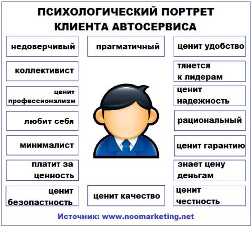 Психологический портрет помогает сделать автосервис максимально привлекательным для клиентов, а значит и максимально прибыльным. Такой инструмент должен применяться не только в автосервисе, но и в любом другом бизнесе.Соответственно первое, что должен сделать любой бизнесмен – получить, во что бы то ни стало, этот инструмент. Психологический портрет клиента можно построить самостоятельно.